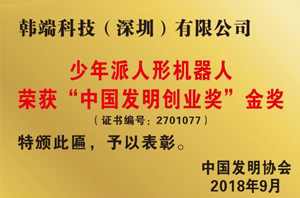 少年派人形機器人-中國創業發明金獎