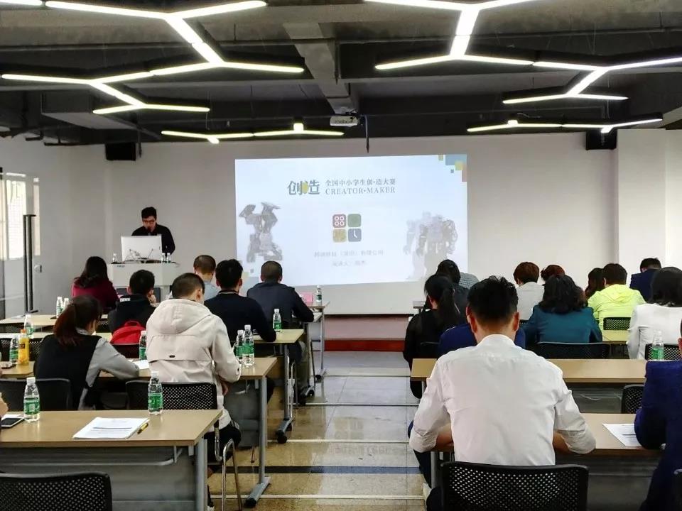韓端科技胡杰老師介紹了全國中小學創(chuàng)·造大賽AI地球分賽項的相關情況。全國中小學創(chuàng)·造大賽是教育部認可的2019年度面向中小學生開展的全國性競賽活動,被科技部、中宣部、中國科協(xié)列為全國科技活動周常年舉辦的重大科普示范活動,并獲得了多個部門的大力支持。