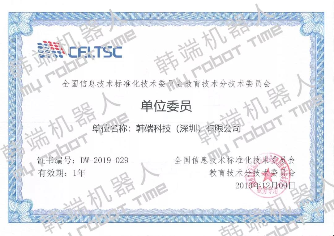 熱烈祝賀韓端機器人作為單位委員加入全國信息技術標準化技術委員會教育技術分技術委員會!