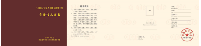 培訓(xùn)結(jié)束經(jīng)考核通過(guò),由中國(guó)電子學(xué)會(huì)頒發(fā)“電子信息人才能力提升工程專(zhuān)業(yè)技術(shù)人才證書(shū)”,證書(shū)是開(kāi)展等級(jí)考試服務(wù)的重要能力證明。根據(jù)人力資源社會(huì)保障部辦公廳印發(fā)的《國(guó)家級(jí)專(zhuān)業(yè)技術(shù)人員繼續(xù)教育基地管理辦法》(人社廳發(fā)〔2013〕53 號(hào))相關(guān)規(guī)定,學(xué)習(xí)情況可作為對(duì)專(zhuān)業(yè)技術(shù)人員考核評(píng)價(jià)、崗位聘用、職稱(chēng)評(píng)聘和執(zhí)業(yè)注冊(cè)的重要依據(jù)。