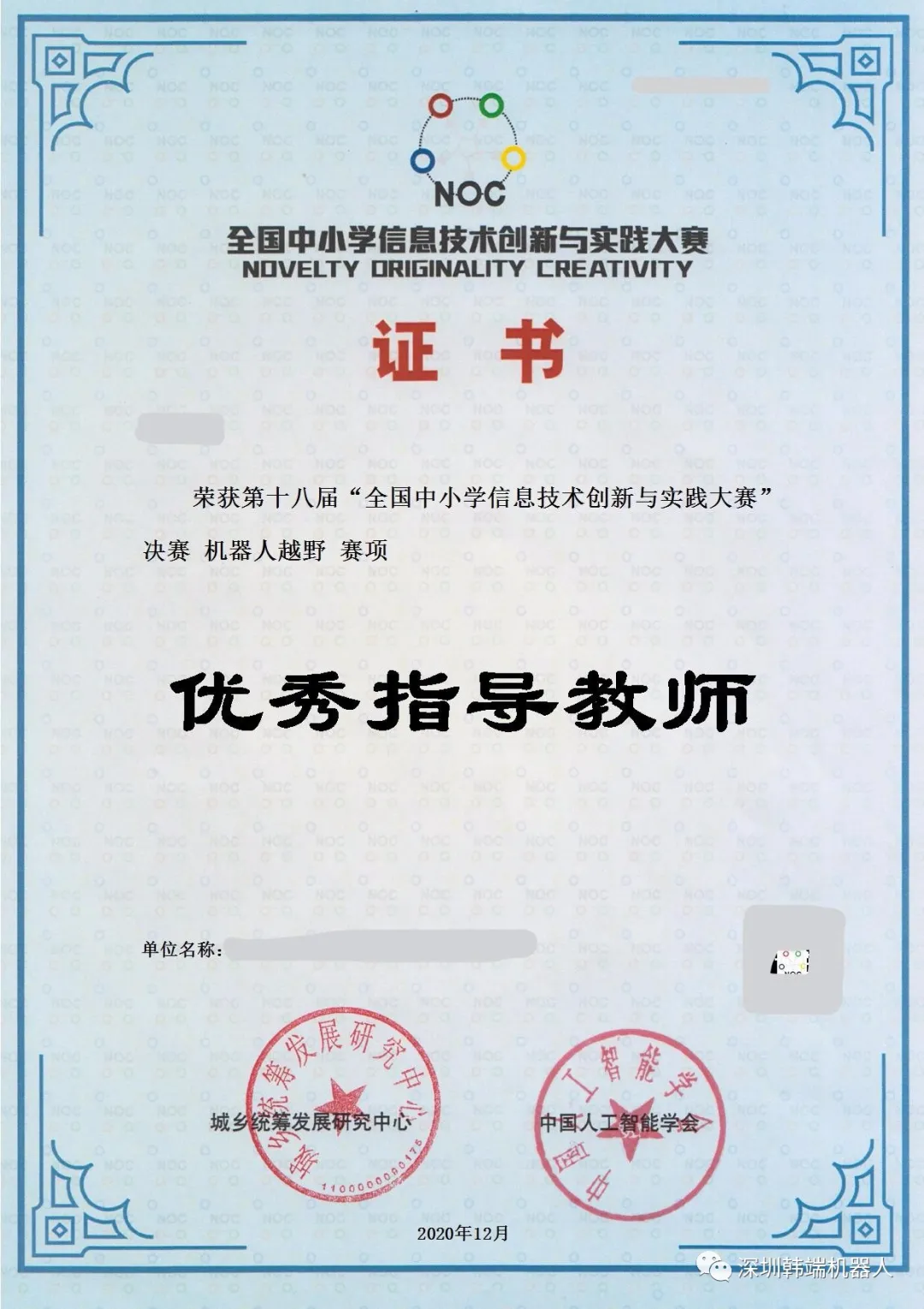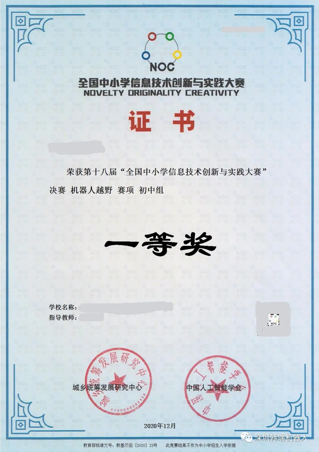 (NOC)獲獎(jiǎng)證書