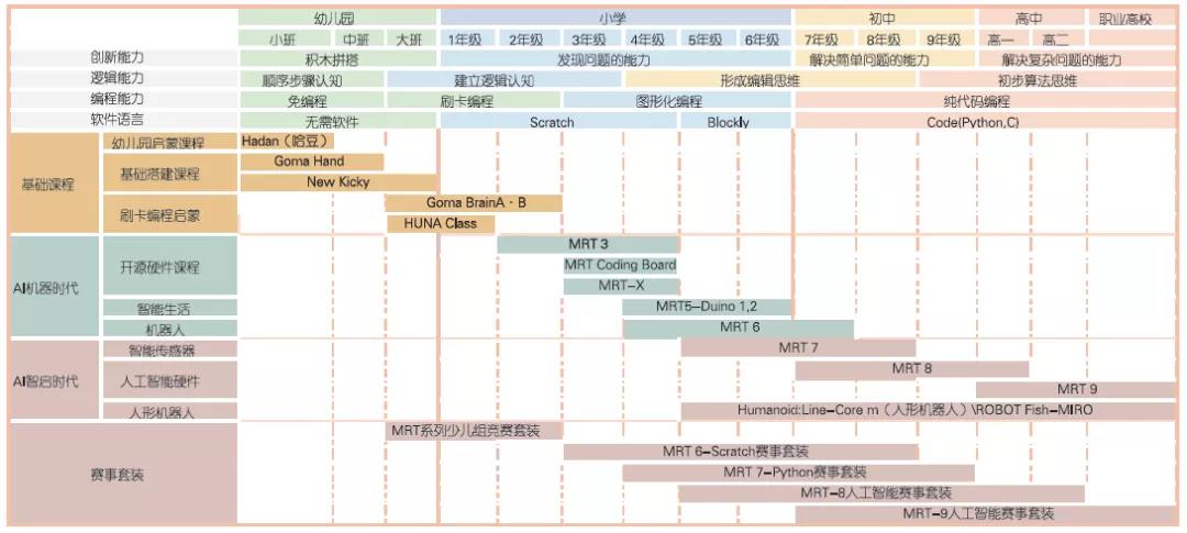 ▲韓端科技全學齡段機器人編程與計算思維培養創新課程產品體系