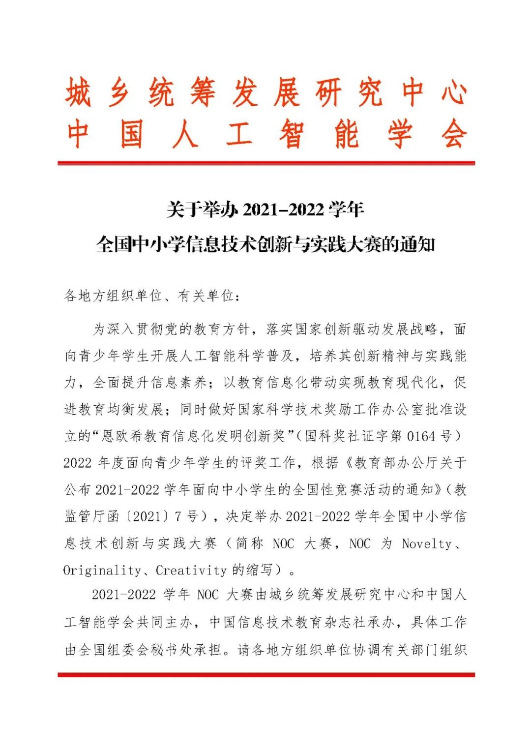 教育部辦公廳公布2021—2022學年面向中小學生的全國性競賽活動名單,名單分為自然科學素養類”“人文綜合素養類”“藝術體育類三類,其中全國中小學信息技術創新與實踐大賽(NOC等競賽活動進入該名單。