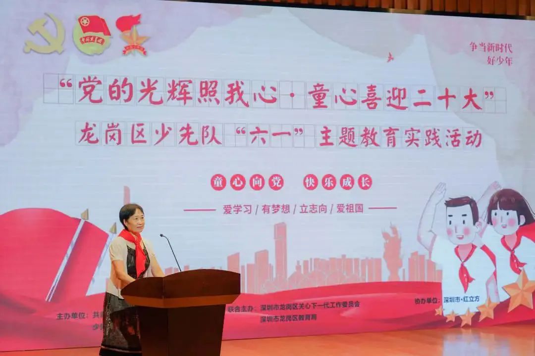 在“六一”兒童節之際,共青團深圳市龍崗區委員會、少先隊深圳市龍崗區工作委員會聯合深圳市龍崗區關心下一代工作委員會和深圳市龍崗區教育局共同舉辦“黨的光輝照我心·童心喜迎二十大”龍崗區少先隊“六一”主題實踐教育活動。