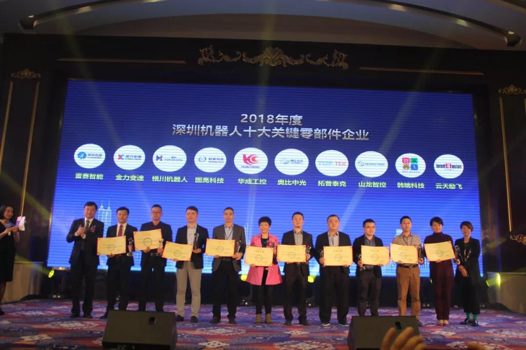 深圳機器人協(xié)會為表彰在機器人領(lǐng)域有突出表現(xiàn)及貢獻的優(yōu)秀企業(yè),推動機器人產(chǎn)業(yè)鏈的全面發(fā)展,鼓勵行業(yè)技術(shù)創(chuàng)新。經(jīng)由《機器人與智能系統(tǒng)》編委會、深圳市機器人青年專家委員會和深圳市機器人與智能系統(tǒng)專家委員會的委員組成的評審委員會,根據(jù)企業(yè)及產(chǎn)品的技術(shù)創(chuàng)新、市場影響力等進行的綜合評選,韓端科技(深圳)有限公司榮獲2018年度深圳機器人十大關(guān)鍵零部件企業(yè)獎,這是韓端機器人繼2017年獲機器人行業(yè)技術(shù)創(chuàng)新服務(wù)機器人獎又一次獲此殊榮!